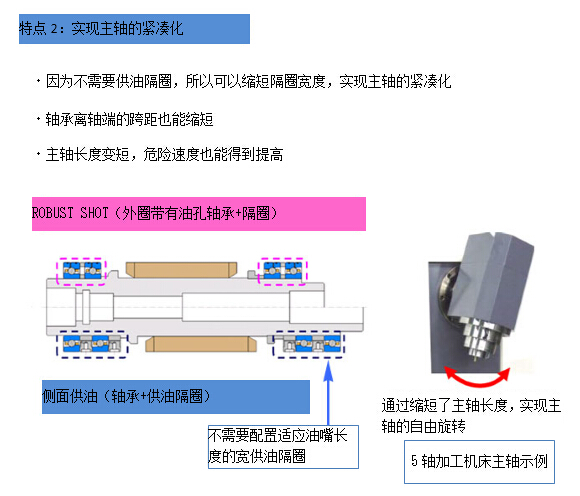 ?通過外圈供油孔直接供油,而不再需要配置供油用隔圈,因此主軸的全長(zhǎng)能夠?qū)崿F(xiàn)緊湊化。這樣,主軸能更加自由地運(yùn)轉(zhuǎn),從而也使加工性能得到了提高。